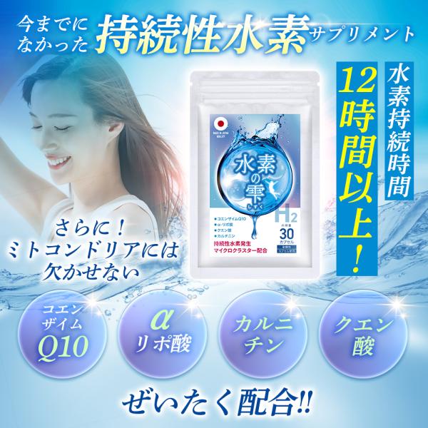 【2個おまとめ割引】 水素サプリ H2 水素の雫 ミトコンドリア コエンザイムQ10 αリポ酸 カルニチン クエン酸 飲む水素 水素持続 無添加