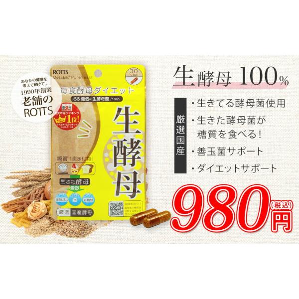 生きてる 酵母 100% 菌活 腸活 ダイエット サプリ 生酵母(30カプセル) 日本の森林から採取した国産天然酵母菌を使用 糖質分解 糖質制限 ROTTS ロッツ