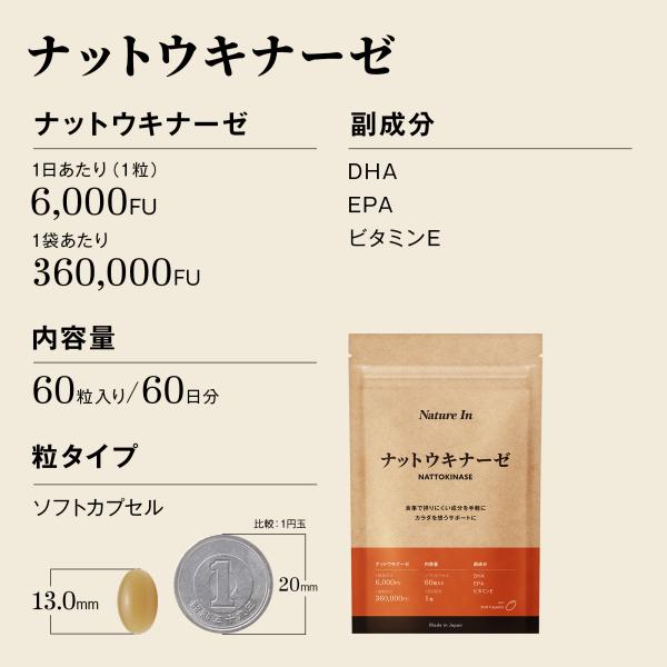 ナットウキナーゼ サプリ k2除去 6000FU 60日分(60粒入) 納豆キナーゼ カプセル サプリメント Nature In DHA EPA 納豆菌
