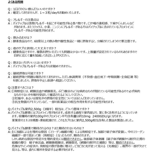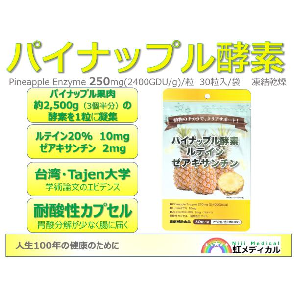 パイナップル酵素<3袋>250mg(2400GDU/g)ルテイン20%10mg ゼアキサンチン10%2mg/粒 腸溶カプセル 蛋白溶解