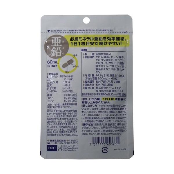 【DHC 亜鉛】60粒 60日分 コンビニでおなじみのDHCサプリメント(サプリ)必須ミネラルを含んだ栄養機能食品です。