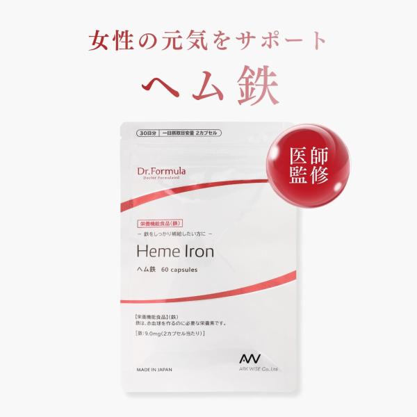 Dr.Formula 医師監修 ヘム鉄 サプリメント 60カプセル 30日分 | サプリ ドクターフォーミュラ 日本製 栄養機能食品 鉄 2カプセル 9mg 鉄分 鉄剤 鉄分補給