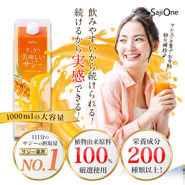 サジージュース すっきり美味しいサジー 1000ml 5本セット 鉄分補給 SajiOne オレンジ ゆず 美容 健康 飲みやすい サジーベリー