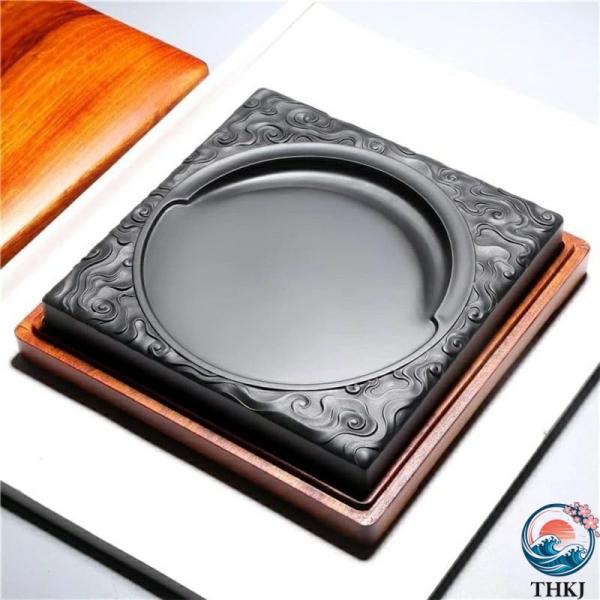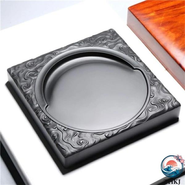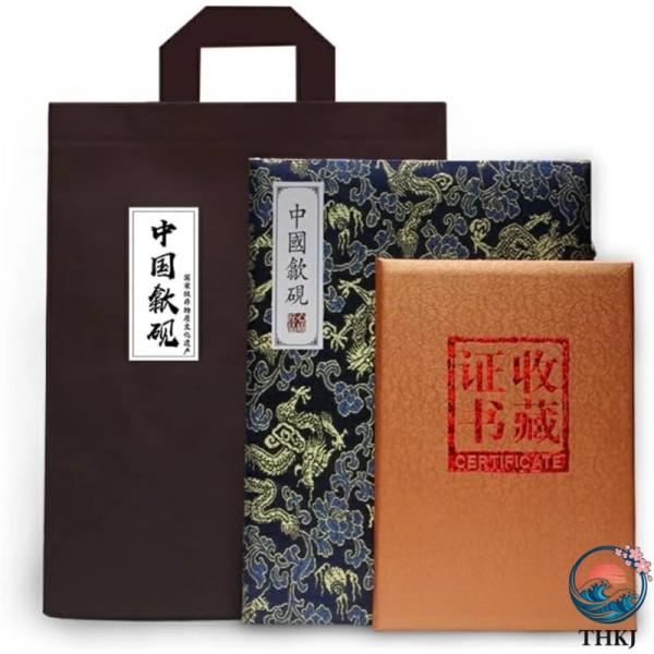 彫花硯 天然石 14.5cm 歙州硯 老坑 硯石 手彫り 書道用品【専用ギフトボックス入り】