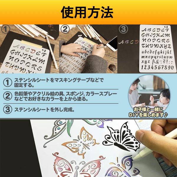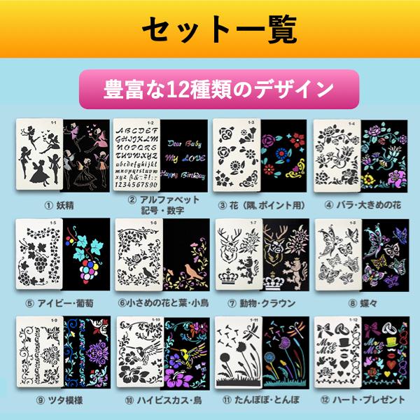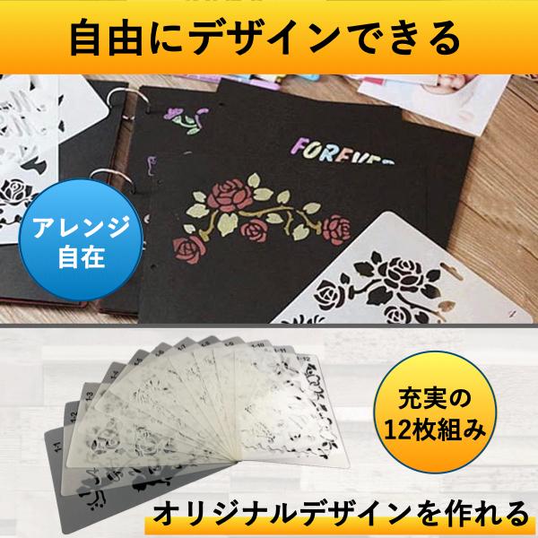 ステンシルシート 花 文字 子供 数字 バラ 大型 図案 アルファベット 小文字 ステンシルプレート はな 子ども こども 12枚組