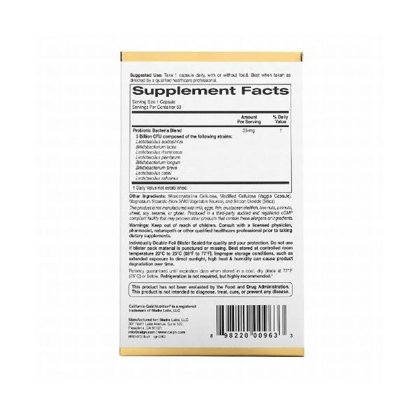 プロバイオ ラクトビフ LactoBif プロバイオティクス 50億CFU 乳酸菌5種&ビフィズス菌3種 善玉菌サプリ 2ヶ月分 60カプセル California Gold Nutrition