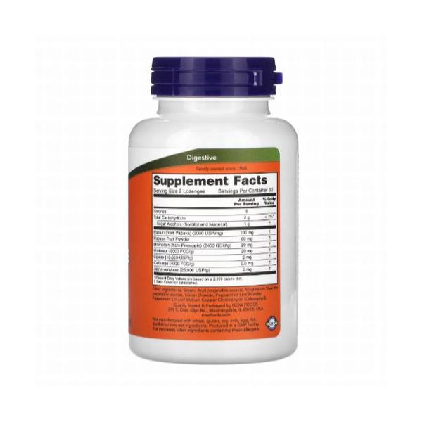 チュアブルパパイヤ分解酵素 180粒入 炭水化物分解酵素2種 タンパク質分解酵素3種 脂質分解酵素1種 消化酵素 サプリメント NOW Foods