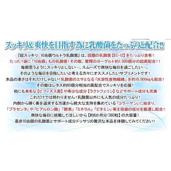 乳酸菌 サプリ ヨーグルト 【送料無料】超スッキリ10兆個ウルトラ乳酸菌(大容量約6ヵ月分/360粒)ダイエット サプリメント EC12