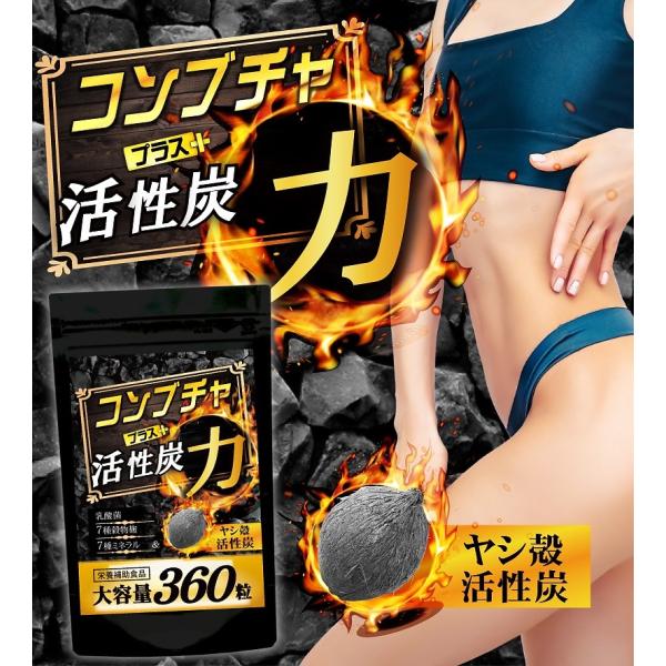 コンブチャ サプリ きのこ紅茶 サプリメント 活性炭 チャコール ダイエット 炭 約6か月分/360粒 クレンズ