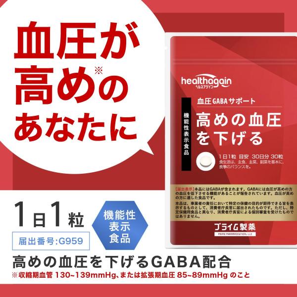 プライム製薬 高めの 血圧 下げる GABA サポート サプリ アミノ酸 サプリメント 1ヶ月分 1袋 機能性表示食品
