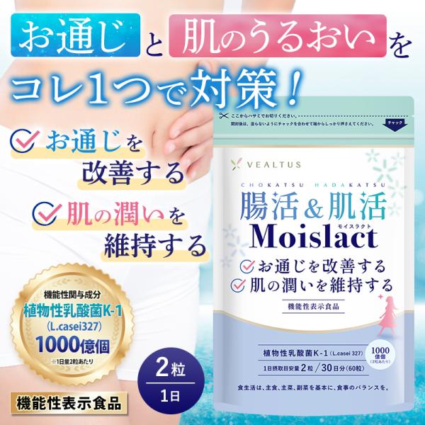 便秘改善 乳酸菌サプリ 美肌ケア 腸活&肌活 モイスラクト お通じを改善 肌の潤いを維持 機能性表示食品 サプリメント コラーゲン ハトムギ 30日分 爆買