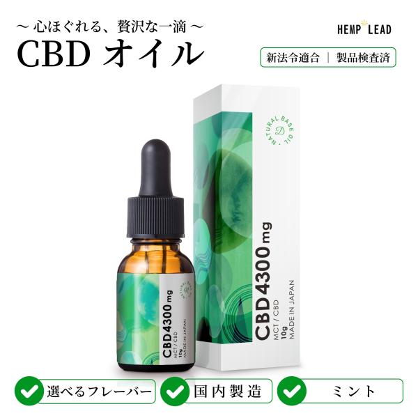CBDオイル 高濃度 4300mg 高濃度 10g 日本製 国内製造 テルペン配合 MCTオイル【公式/送料無料】HEMP LEAD
