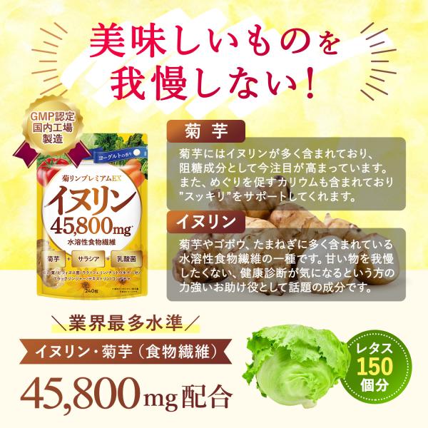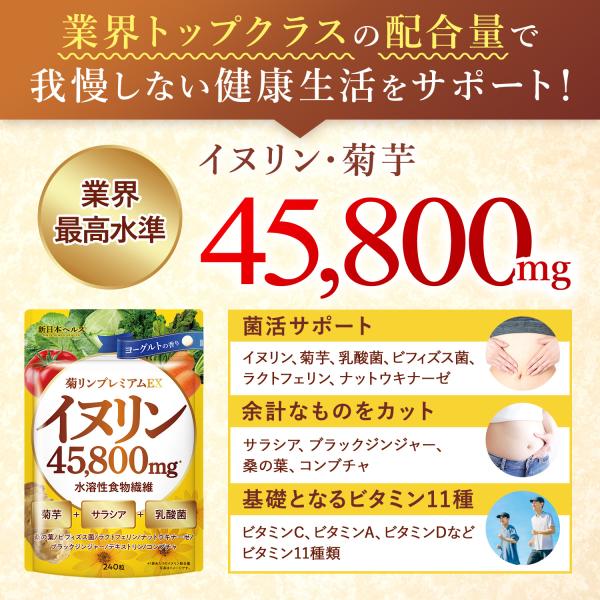 イヌリン 菊リンプレミアムEX 水溶性 食物繊維 菊芋 高濃度 45,800mg サラシア 乳酸菌 240粒 新日本ヘルス