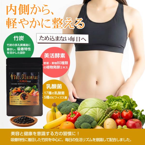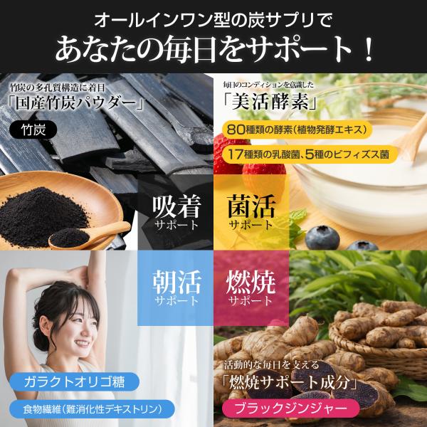 炭サプリ 第2弾 オールインワン型 タブレット90粒 3ヵ月分 竹炭パウダー 酵素 乳酸菌 菌活 吸着 イヌリン サラシア 製薬会社共同開発 ポスト投函