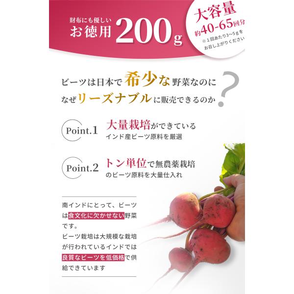 ビーツパウダー ビーツ (200g) ビートルート 農薬不検出 粉末 赤ビーツ サプリ 野菜 無添加 無着色 beet 爆買