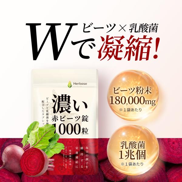 ビーツ 1000粒 錠剤 サプリ 赤ビーツ ビートルート beet タブレット beetroot 日本製 Herbase(ハーベース) 爆買