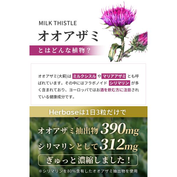 ミルクシスル サプリ (60日分) ミルクシスル抽出物23400mg シリマリン18720mg クルクミン2700mg マリアアザミ 肝臓 milk thistle silymarin 国産 大薊 Herbase