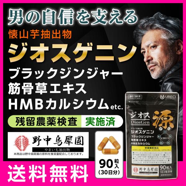 ジオス源90粒入り ジオスゲニン サプリ サプリメント ヤマイモ抽出物 ブラックジンジャー 筋骨草エキス HMBカルシウム 日本製