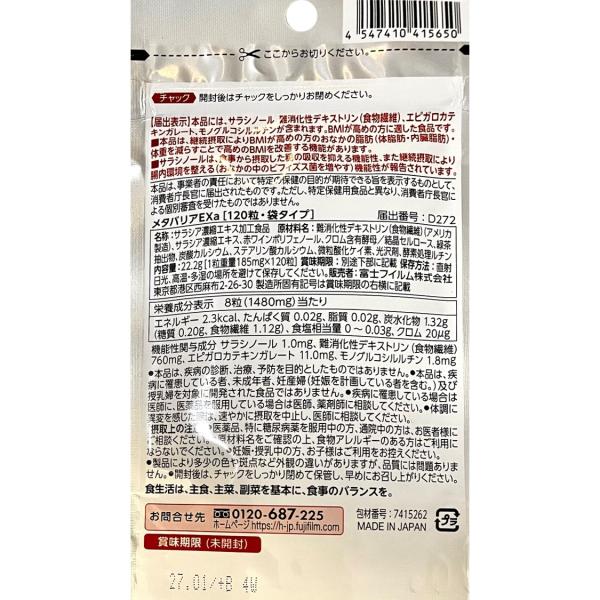 メタバリアEX 120粒 15日分 富士フィルム FUJIFILM 糖の吸収を抑える 腸内環境を整える おなかの脂肪体重を減らす コストコ 送料無料