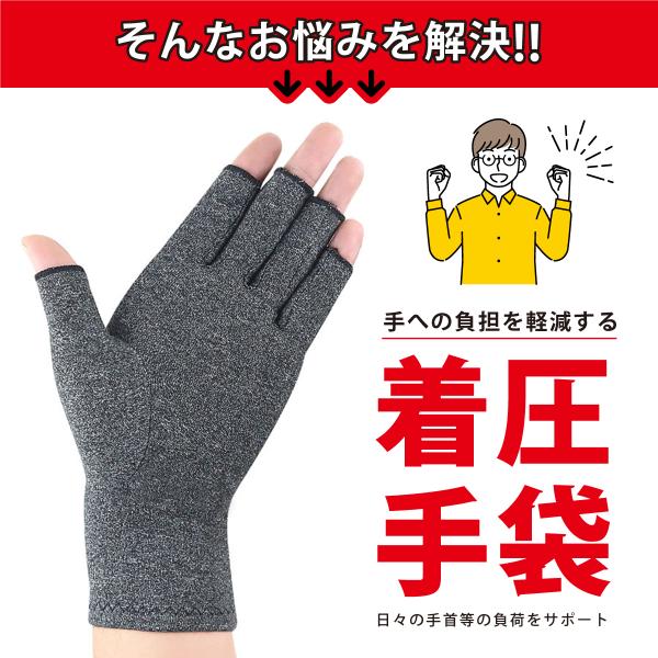 着圧手袋 手袋 サポーター 手首痛み 腱鞘炎 リウマチ 関節炎 バネ指 痛み軽減 指なし 指ぬき 衛生的 軽量 手の平 ケア