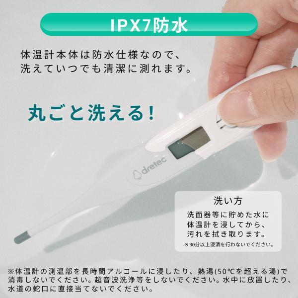体温計 防水タイプ 防水体温計 電子体温計 洗える メモリー機能 自動オフ ケース付き 実測式 わき 口内 コンパクト 小さい 病院 ドリテック 一般医療機器 TO-103
