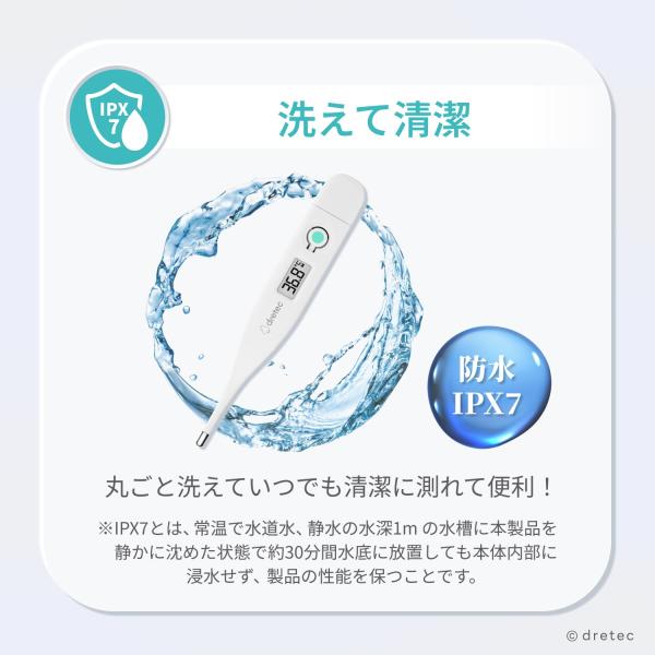 ドリテック 公式 体温計 デジタル体温計 実測式 わき下測定 口中測定 IPX7 防水体温計 発熱チェック ブザー通知 メモリー機能 オートパワーオフ ホワイト TO-103