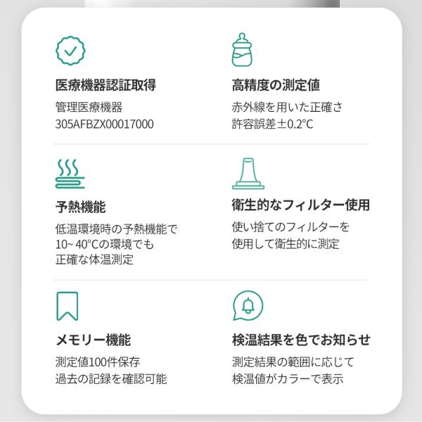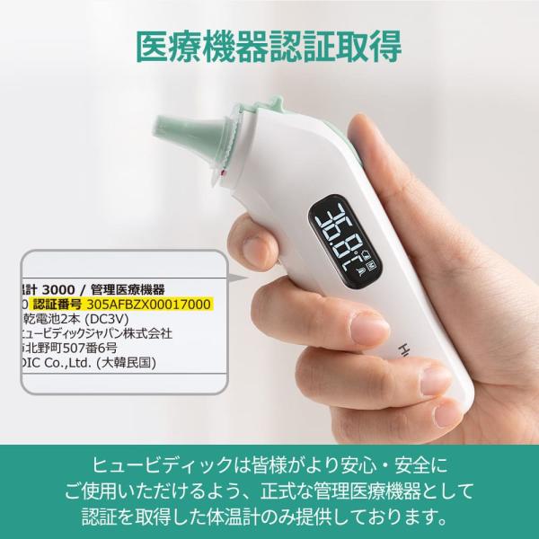 体温計 耳 非接触型 赤ちゃん 非接触体温計 日本医療機器認証 1秒 早い 予熱機能 使用環境温度10〜40℃ フィルター付き 大人 メモリー機能 HuBDIC
