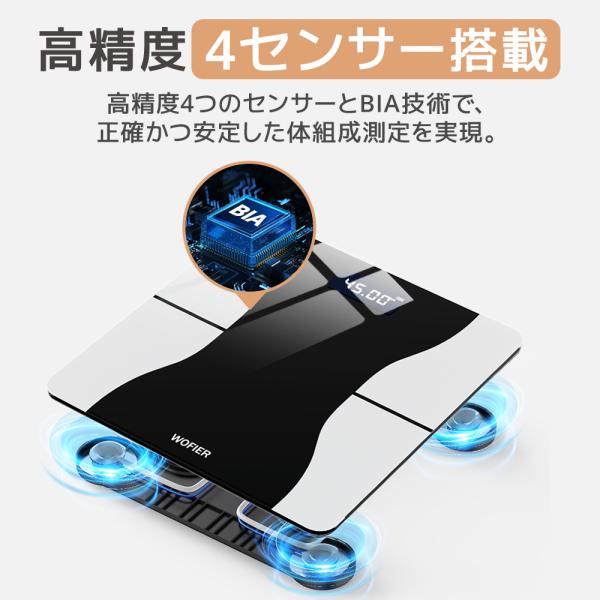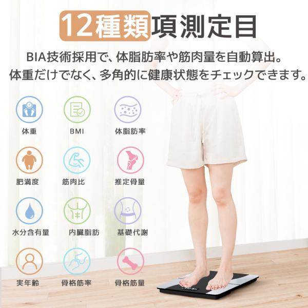 体重計 スマホ連携 デジタル 体組成計 薄型 高精度 体脂肪率 体脂肪 水分率 基礎代謝量 BMI値 電源自動ON/OFF 健康管理 ダイエット 家庭用 【レビュー特典あり】