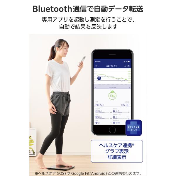 体重計 体組成計 ヘルスメーター Bluetooth スマホ連動 体重 体脂肪率 BMI 内臓脂肪 皮下脂肪率 骨格筋率 骨量 基礎代謝 FFMI EFSBT01 公式店 日本メーカー