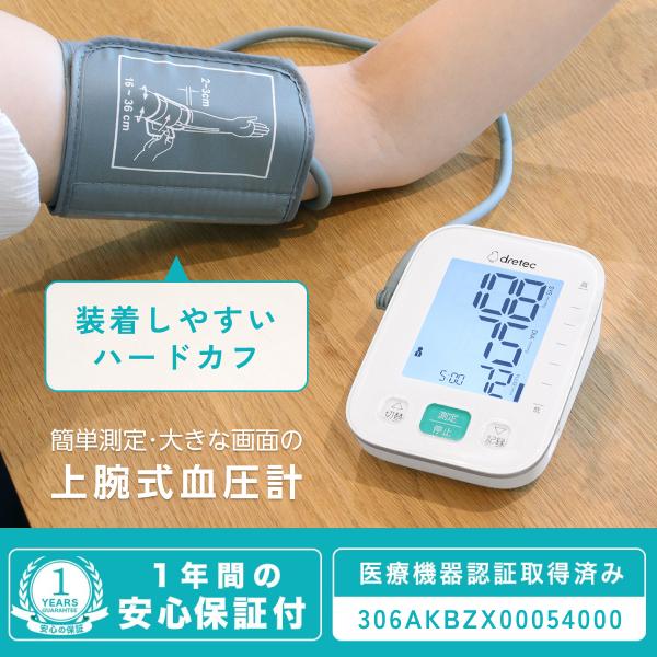 血圧計 上腕式 ハードカフ ドリテック 公式 BM-215 医療機器認証 日本メーカー 上腕式血圧計 簡単 大画面 敬老の日 プレゼント 有料ラッピング可