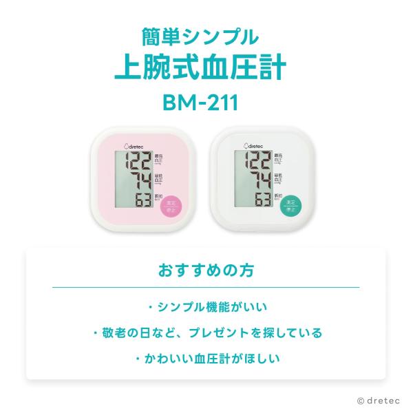 ドリテック 公式 血圧計 上腕式 簡単操作 上腕式血圧計 シンプル 最高 最低血圧 脈拍 電池交換サイン付き コンパクト 小型 敬老の日 プレゼント BM-211