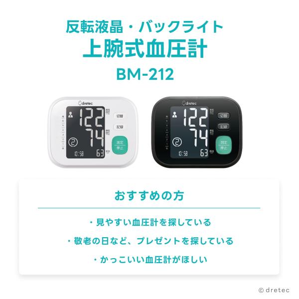ドリテック 公式 血圧計 上腕式 上腕式血圧計 2人分記録 60回分メモリー バックライト ギフト プレゼント 敬老の日 おじいちゃん おばあちゃん BM-212