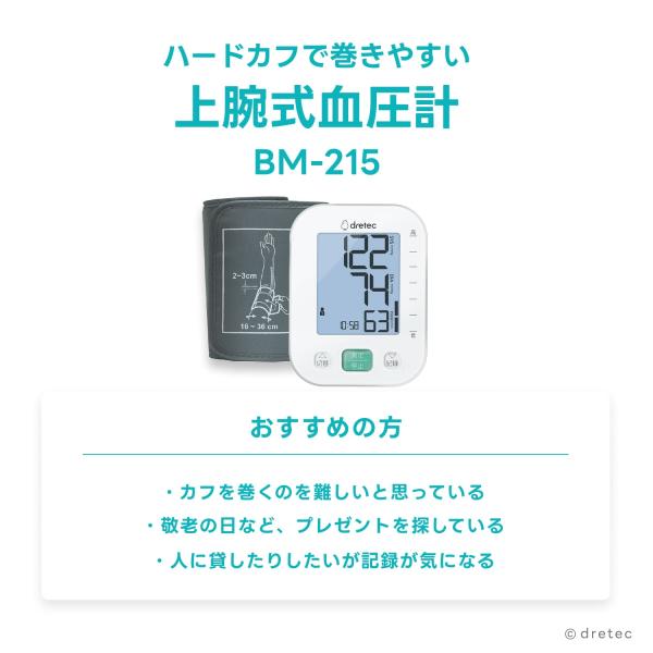 ドリテック 公式 血圧計 上腕式 上腕式血圧計 ハードカフ コンパクト 医療機器認証 大画面 血圧 脈拍 家庭用 簡単 見やすい 敬老の日 健康管理 BM-215
