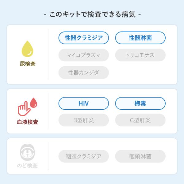 男性セットB 4項目:HIV感染症/梅毒/性器クラミジア/性器淋菌感染症 郵送性病検査キット