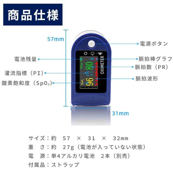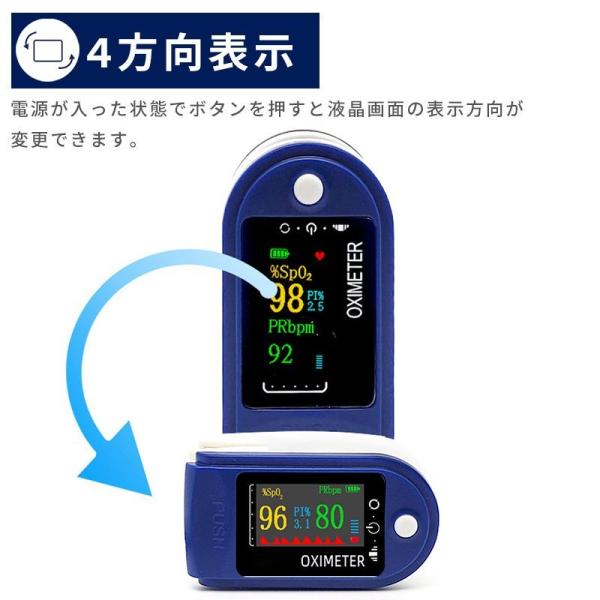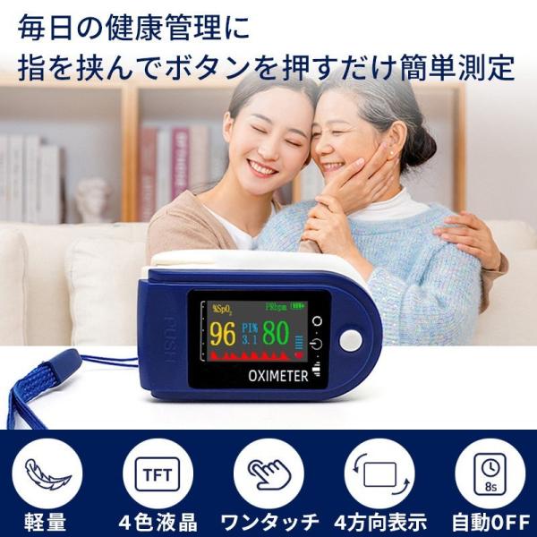 【非医療】オキシメーター 血中酸素濃度計 ストラップ付 指 脈拍計 酸素飽和度 ポータブル 健康管理 パルスメーター ウェルネス機器 ブルー