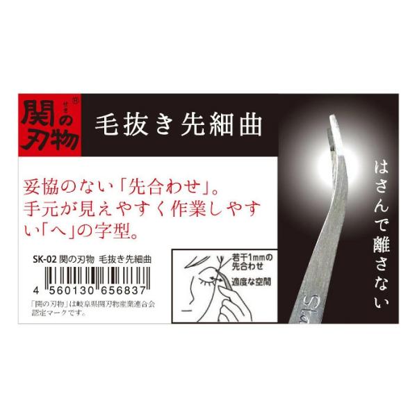 関の刃物 毛抜き先細曲 SK-02 / ステンレス 先合わせ への字 キャッチしやすい リヨンプランニング 岐阜県 日本製 メール便