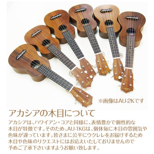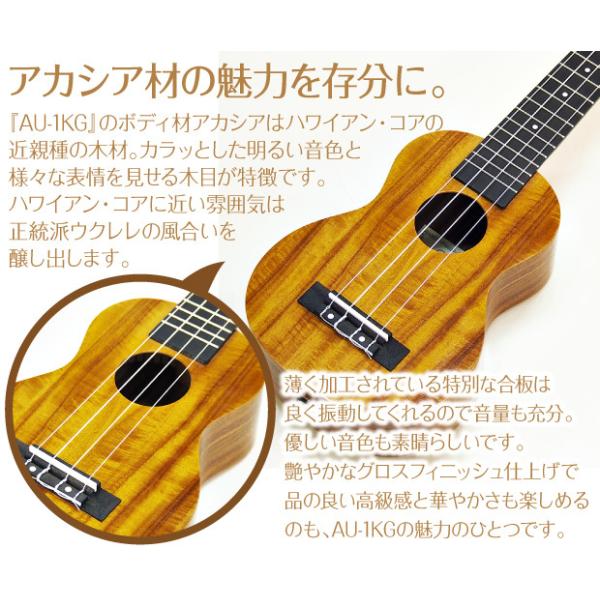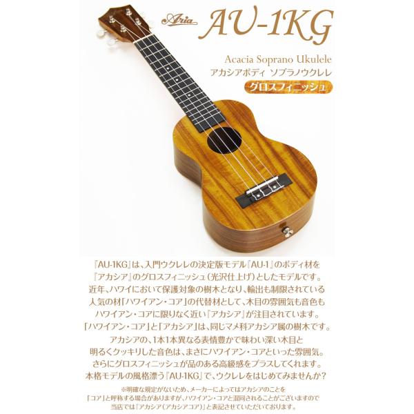 ウクレレ アリア AU-1KG ソプラノ 初心者入門9点セット アカシアコア Aria 弦高調整済(ハワイアンコアのような華やかな音色)(エンドピン付)(u)