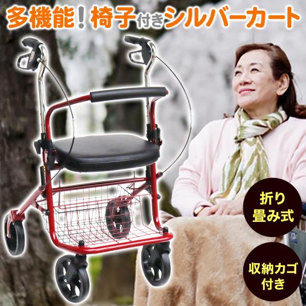 シルバーカー 軽量 コンパクト おしゃれ 座れる 歩行器 高齢者 室内用 シルバーカーに見えない 手押し車 介護 折りたたみ シルバーカート 大車輪 荷物