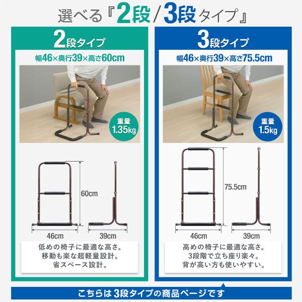 手すり 置き型 立ち上がり 置くだけ 3段/75.5cm 単品 玄関 トイレ ベッド 介護用手すり 補助手すり 補助器具 立ち座り 工事不要 手摺 1年保証 送料無料