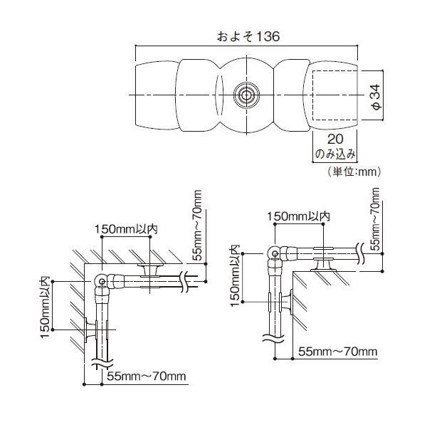 【直送品】マツ六 BAUHAUS フリーRレール フリージョイント 内径直径34mm×W136mm | 屋外 手摺 手すり 玄関 取付 転倒予防 介護用品 福祉用品 diy