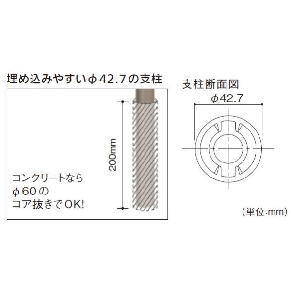 【直送品】マツ六 BAUHAUS フリーRレール E埋め込み式支柱 直径42.7mm×全長1100mm | 屋外 手摺 手すり 玄関 取付 転倒予防 介護用品 福祉用品 diy