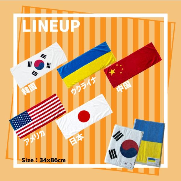 国旗柄タオル フェイスタオルサイズ 染料プリント