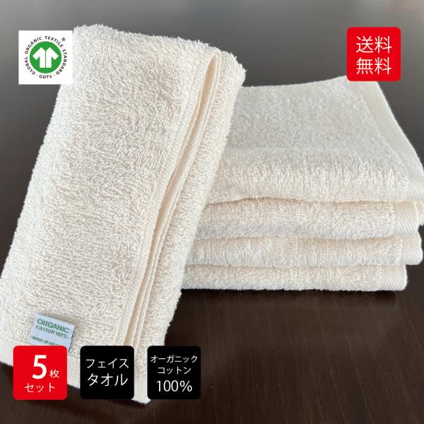 オーガニックコットン100% フェイスタオル 5枚セット
