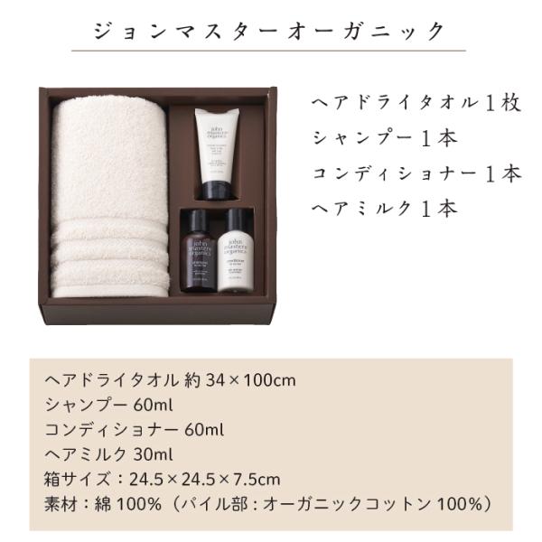 ジョンマスターオーガニック タオルギフト ヘアドライタオル 1枚・シャンプー・コンディショナー・ヘアミルク ギフトセット オーガニックコットン