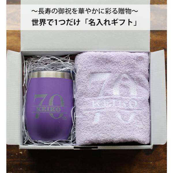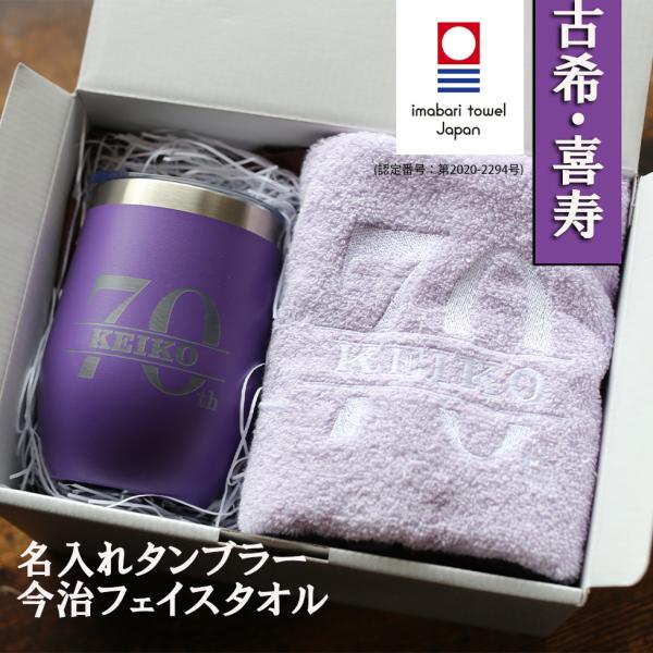 古希 喜寿 お祝い 男性 女性 タンブラー マグ 今治タオル 名入れ 紫 おしゃれ フェイスタオル 無料メッセージ ギフト セット プレゼント 父 母 古希祝い