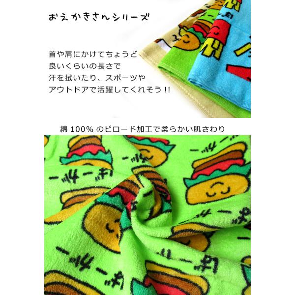 フェイスタオル 安い おえかきさん 34cm×75cm かわいい プール 海水浴 入学 卒業 入園 プレゼント お礼 ダブルスリー