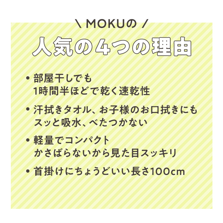 MOKU ORGANIC フェイスタオル 33×100cm ループ付きタオル 綿 コットン 速乾 吸収 軽量 ボディタオル 日本製 今治 タオル 長い マフラータオル 乾きやすい 薄手