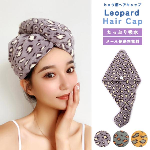 「レビュー記入でメール便送料無料」ヘアタオル ヘアキャップ タオル お風呂上り 吸水 子供 タオルキャップ プール 速乾 ヒョウ柄 GPT gu1b798-mail(gu1b799)