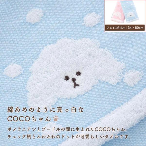 今治タオル COCOちゃん フェイスタオル 日本製 片面ガーゼ かわいい 犬柄 ピンク・ブルー 1927-132