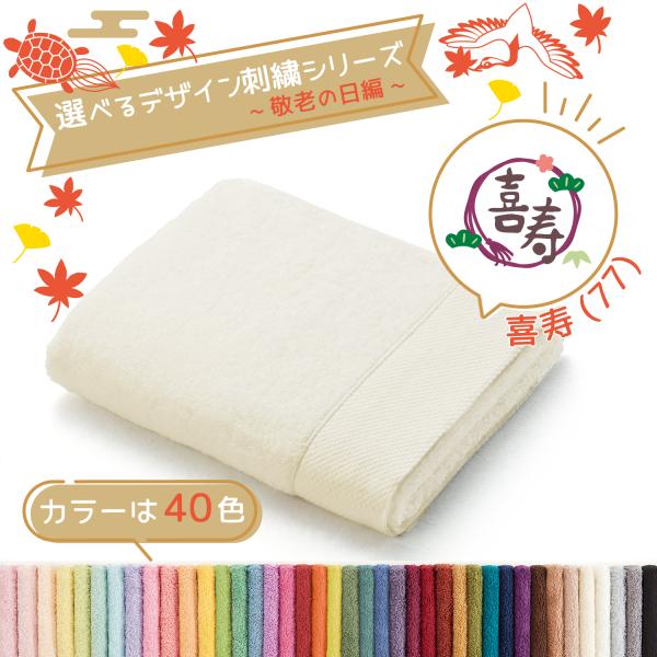 名入れ 刺繍 タオル 40色タオル フェイスタオル 長寿 敬老の日編 喜寿(77) R ギフト プレゼント お祝い 贈り物 タオル美術館 公式 記念品 クリスマス